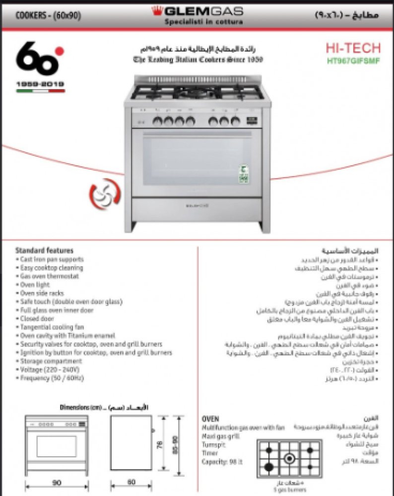 فرن جليم غاز 60*90 استيل+ مروحة امان تام