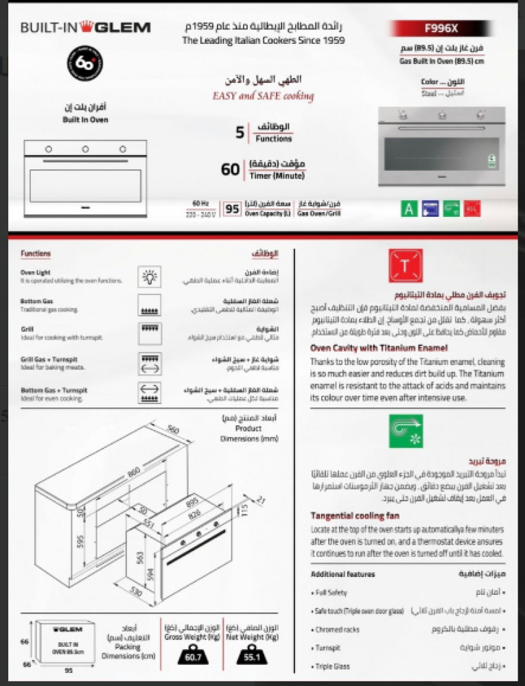 فرن جليم غاز 90 بلت ان غاز 5 وظائف